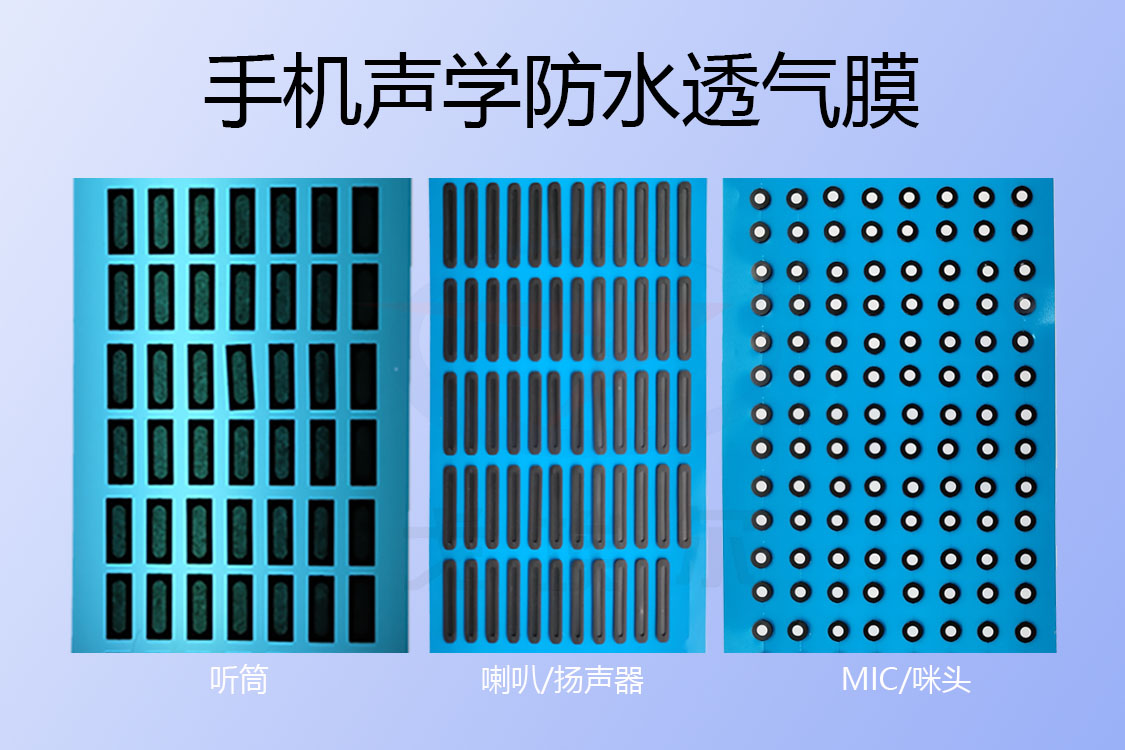 (喇叭聲學(xué)防水透氣膜、聽筒聲學(xué)防水透氣膜、咪頭聲學(xué)防水透氣膜)等方式,來做好聲學(xué)器件透聲阻水這一特殊要求。與采用硅膠、