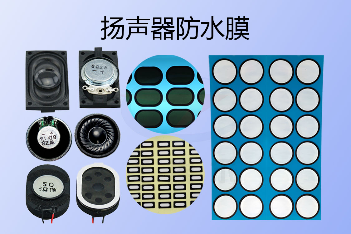 針對揚聲器、喇叭、蜂鳴器等電聲器件防水,戈埃爾提出了一種揚聲器防水膜、喇叭防水膜聽筒防水膜、麥克風防水膜定制化解決方案,防塵防水防護等級能達到IP67級,還可以達到IP68級,防水性能更好、在實現更好的防水的前提下,還具有很好的透氣性能與透聲性能。揚聲器防水膜材料可以使得聲音音損控制在2dB范圍內,保證了聲音有很好的音質;揚聲器防水膜材料很好的透氣性能可以實現內部腔體與外部環境的大氣壓力差,避免因為壓差不平衡而使得聲音音質失真;揚聲器防水膜還具有很好的防塵性能,可以將灰塵等細小顆粒隔絕在外部。揚聲器防水膜一般是用在電子產品殼體的出音孔處,揚聲器防水膜還可以直接安裝在電聲器件然后通過防水密封膠點膠加工來實現防水密封。