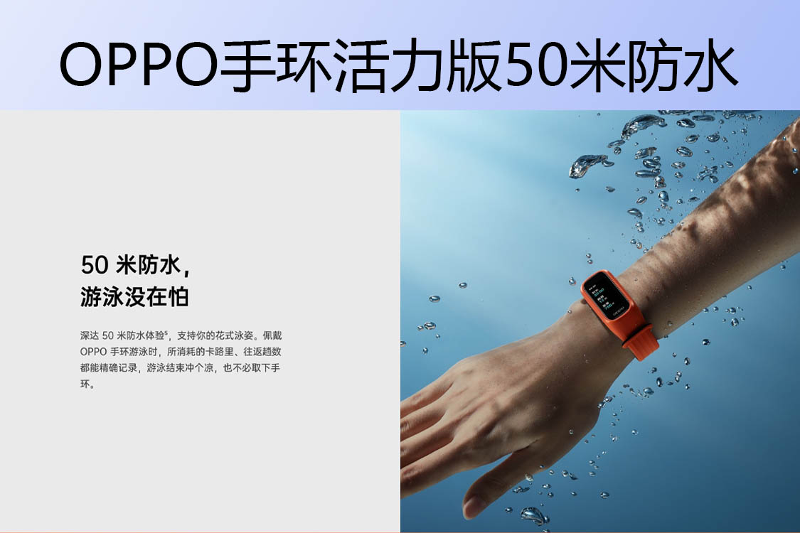 在2021年5月6日,OPPO在發布會上正式發布了K系列新品K9手機。除此之外,還發布了兩種全新配色的OPPO手環活力版,而且OPPO手環活力版還是國內首家支持微信與支付寶雙支付的智能手環。OPPO手環活力版支持連續血氧監測、間隔血氧監測以及單點主動血氧監測。其中連續血氧監測可實現睡眠8小時監測28800次,準確測量血氧飽和度和呼吸狀態;OPPO手環活力版也支持全天候睡眠監測,午睡睡眠檢測更是不在話下。OPPO手環活力版擁有這么多功能,那么該產品防水性能如何呢?