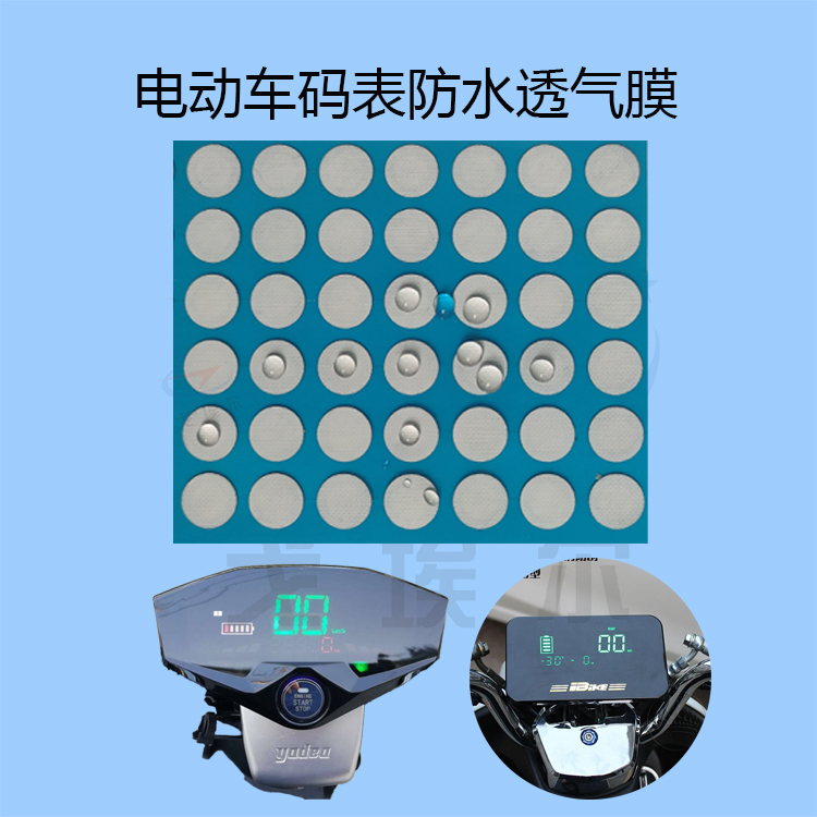 電動車在人們生活中越來越實用。出行比較方便。現在的電動車越來越智能化了。基本都帶有比表盤。一般來顯示電動車當前的電量與電壓、車速、行駛里程與時間等內容。讓騎手隨時看到電動車的運行情況。電動車在戶外行駛會遇到雨天或停放在戶外的就避免不了雨水的侵入。因此電動車顯示屏防水就非常重要。必須要有高于IP67防水防塵等級的防水透氣膜來保護。這樣可以確保電動車顯示屏不浸入雨水,而且在任何環境下正常運行。也保障了騎手的生命安全。
