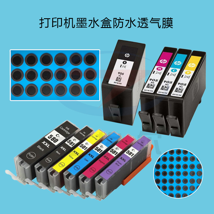 為了解決打印不連續(xù)的問(wèn)題,工程師們研發(fā)了一種高密度的防水透氣膜,在墨盒中使用這種薄膜材料可以平衡內(nèi)外壓力差異,使墨水連續(xù)、均勻地輸出。該膜材料還可以幫助墨水中的氣體釋放,從而提高打印品質(zhì)。同時(shí),特殊處理的表面使其不受帶有表面活性劑的墨水的影響,即使接觸墨水后仍能保持高效的透氣性能,從而防止墨水外泄。